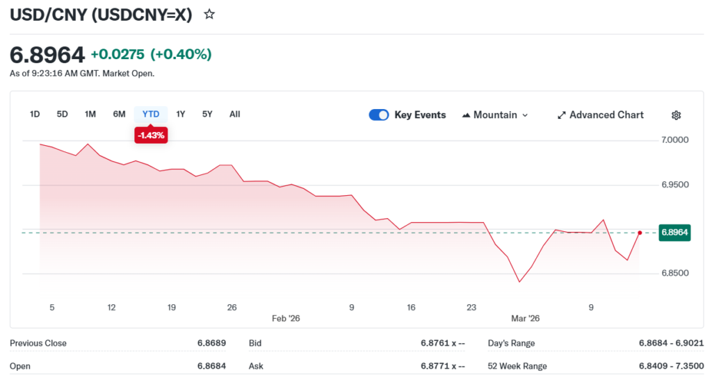 USDCNY Fix: 6.9007 vs exp. 6.8888 (Prev. 6.8959)