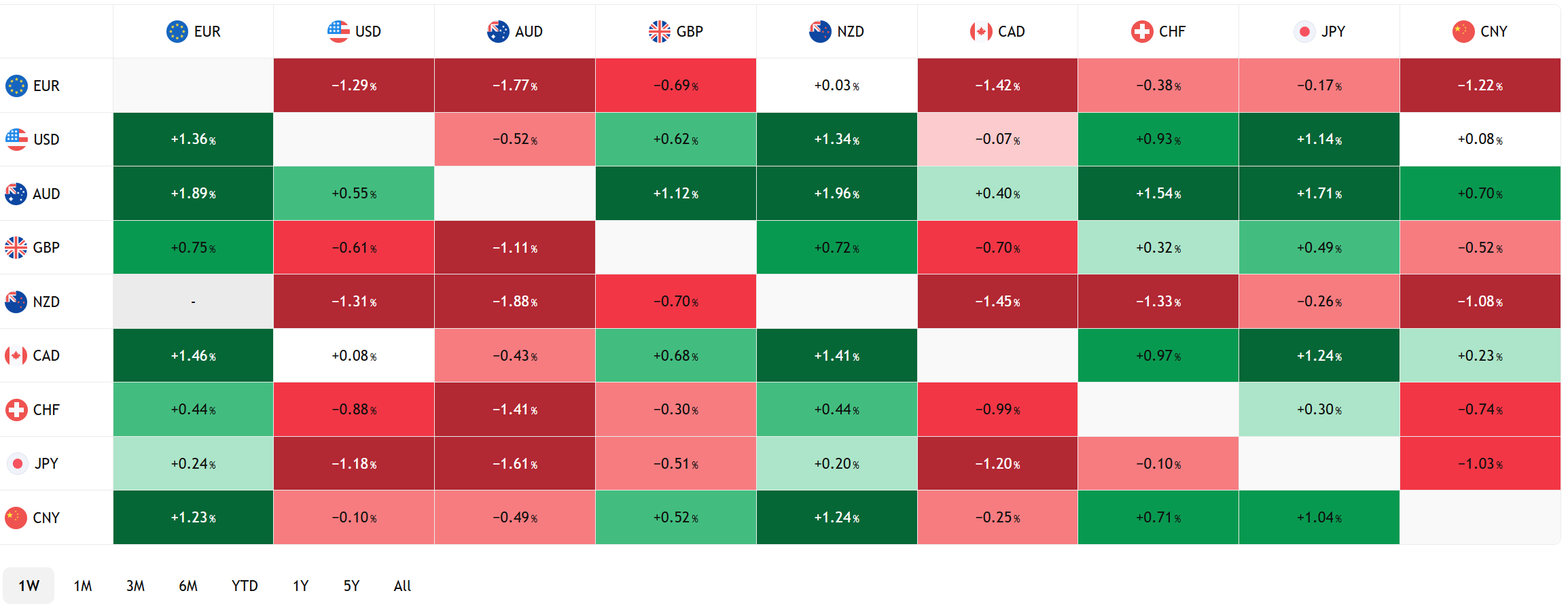 FX Heat Map (6:00 am) one week