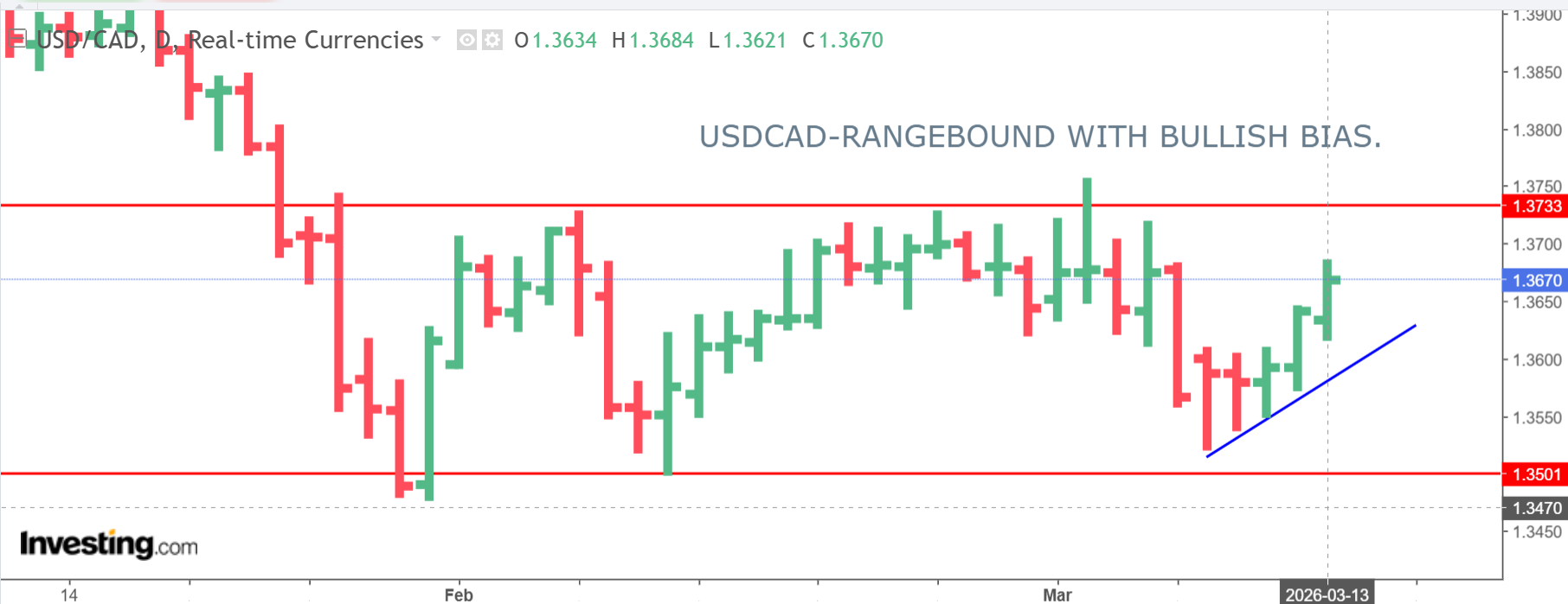 USDCAD open: 1.3670, overnight range 1.3621-1.3698, close 1.3642