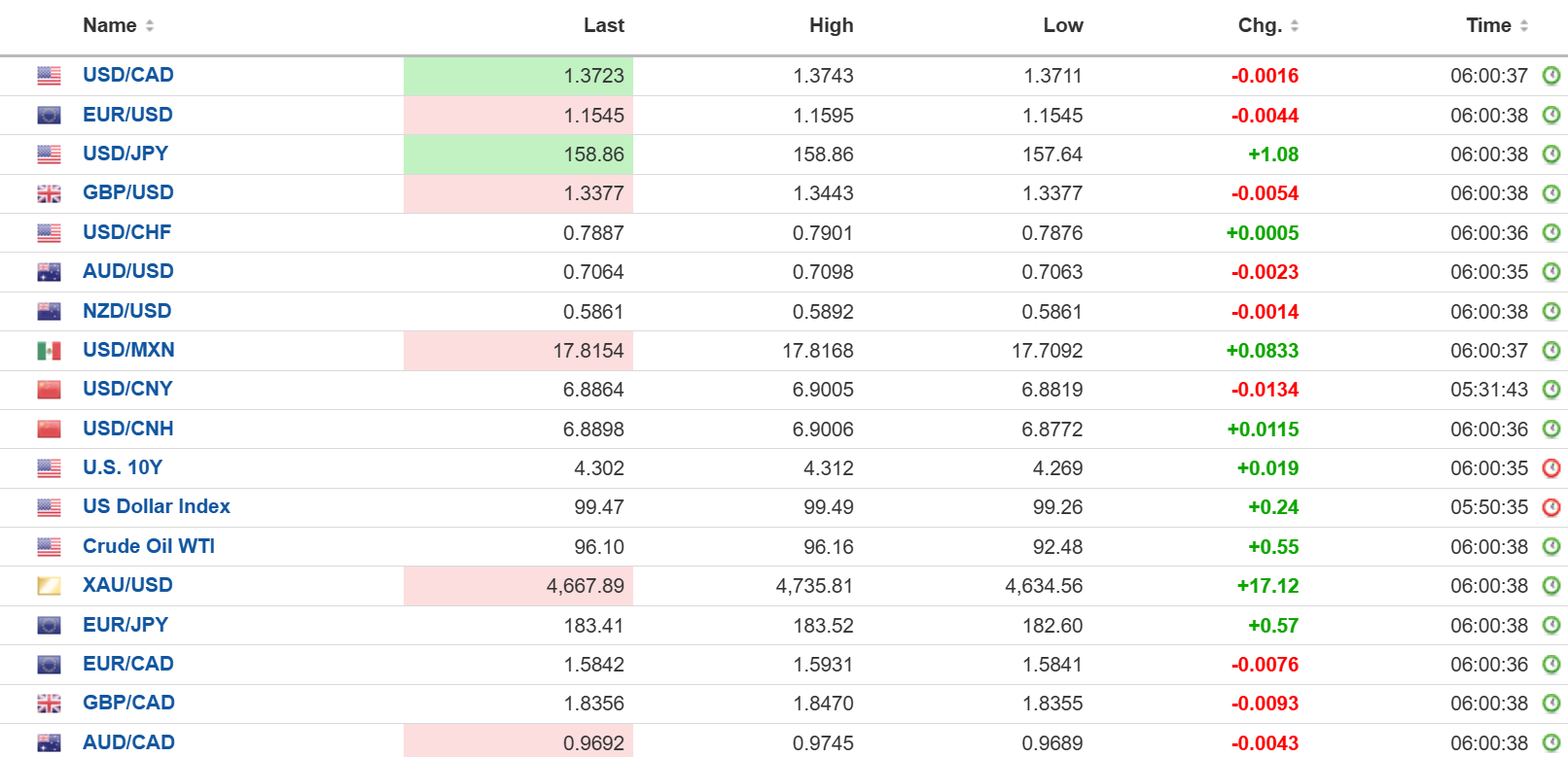 FX open high low 6:00 am