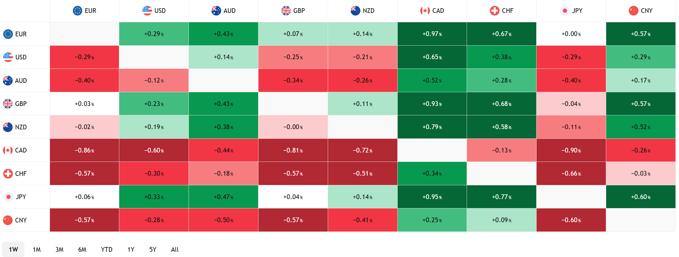 FX Heat Map (6:00 am) one week