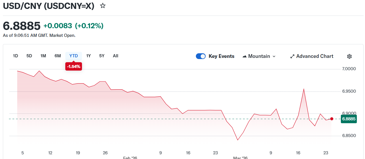 USDCNY Fix: 6.8943 vs exp. 6.8840 (Prev. 6.9041)