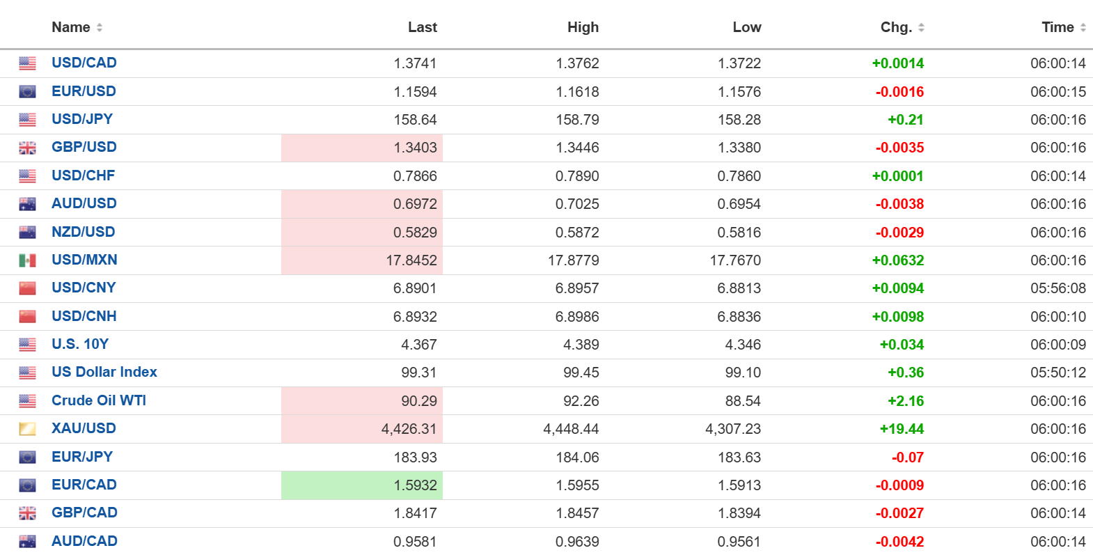 FX open high low 6:00 am