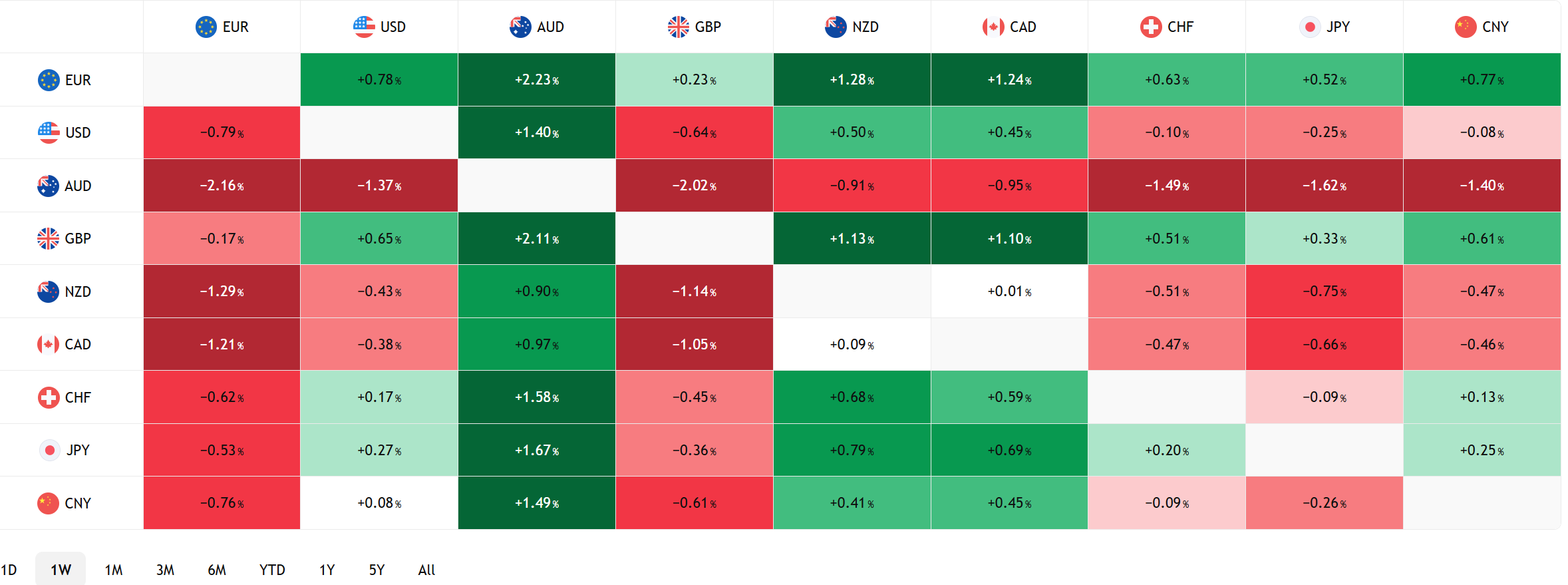FX Heat Map (6:00 am) one week
