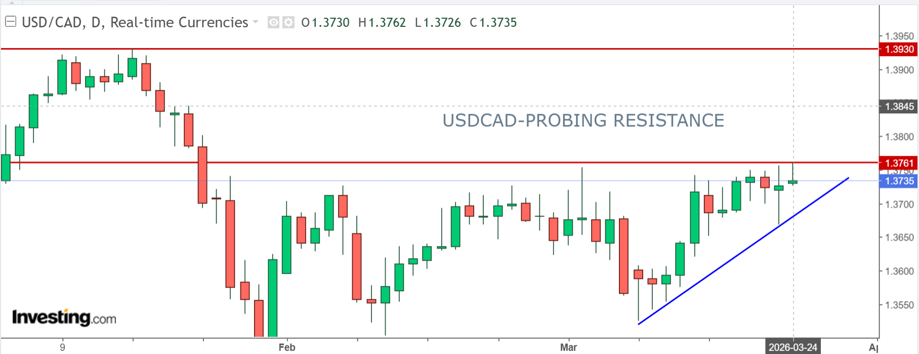 USDCAD had a wild morning yesterday but after the dust cleared, the reason for broad-based US dollar strength remained unchanged, and USDCAD is currently trading at yesterday’s peak.