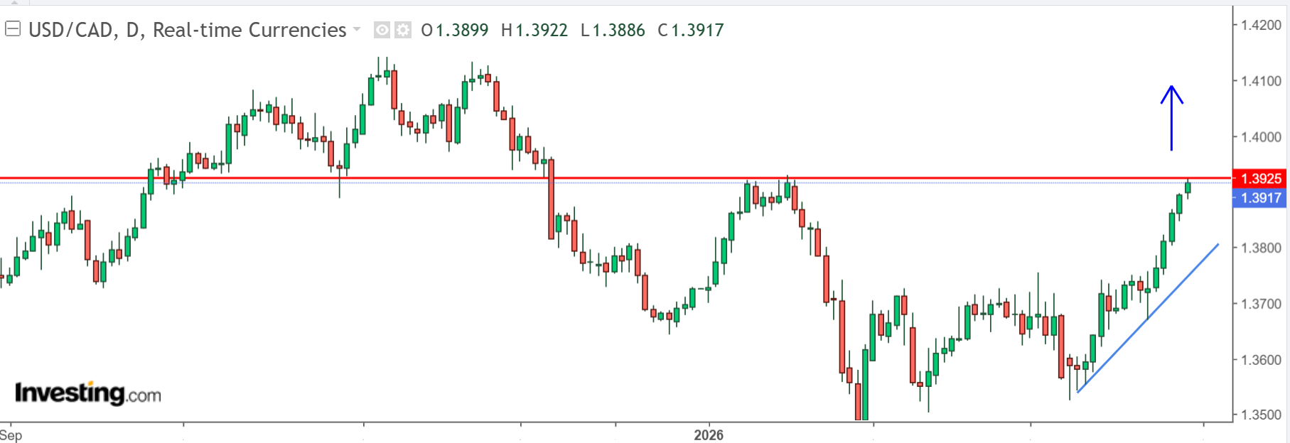 USDCAD rallied steadily overnight due to a fresh wave of global risk aversion after oil prices surged to a near four-year peak. So much for the Canadian dollar as a “petrocurrency.”