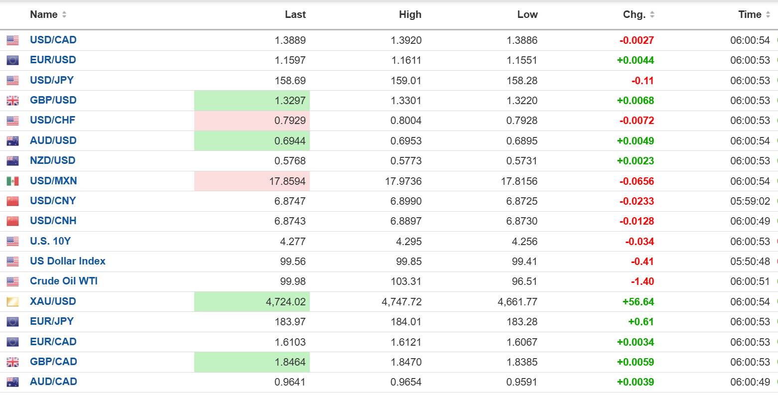 As of 5:30 am PT, European markets are rising. The German Dax is up 2.61%, the UK FTSE 100 has gained 1.89% and the French CAC 40 is up 1.97%. S&P 500 futures have risen by 0.69%, the 10-year Treasury yield is 4.307%, the DXY is 99.48, and Gold (XAUUSD) is 4748.92.