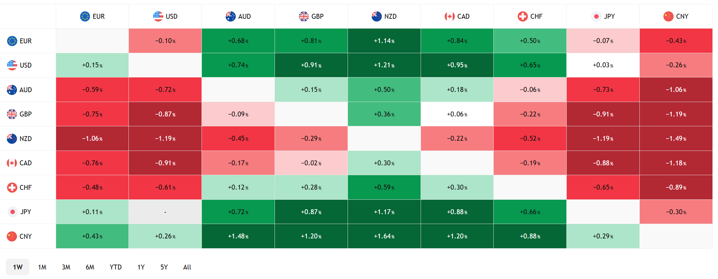FX Heat Map (6:00 am) one week
