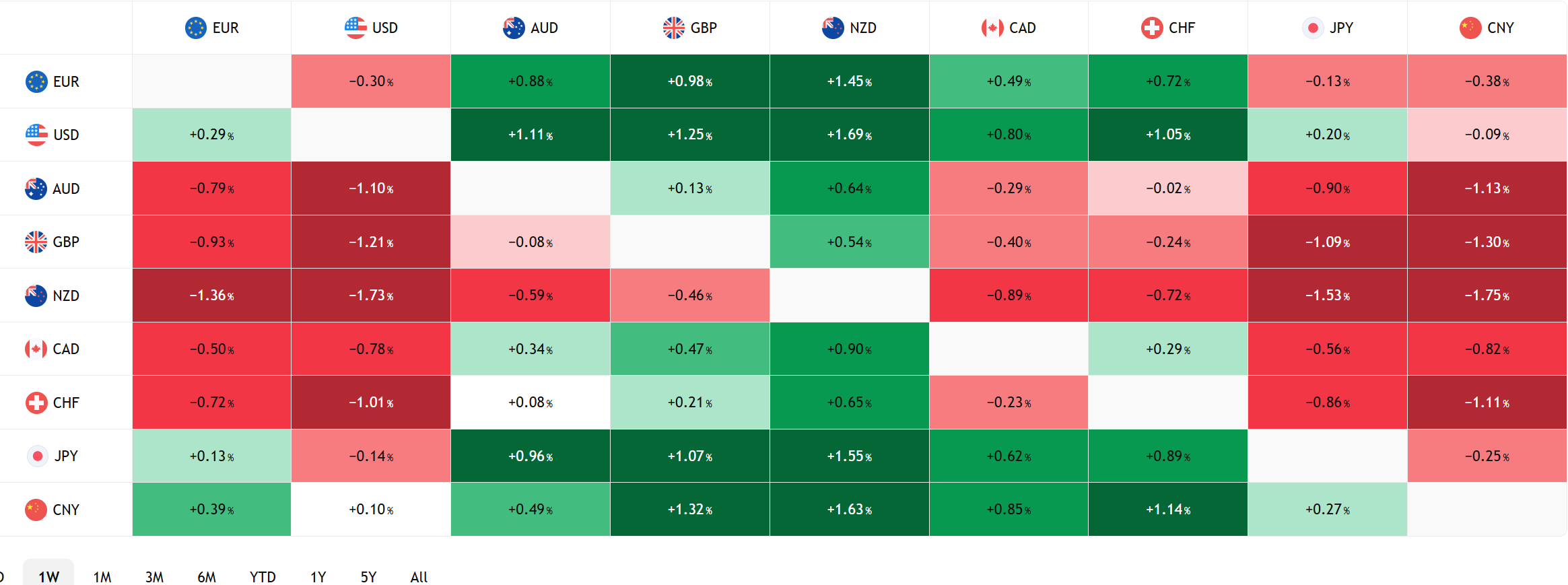 FX Heat Map (6:00 am) one week