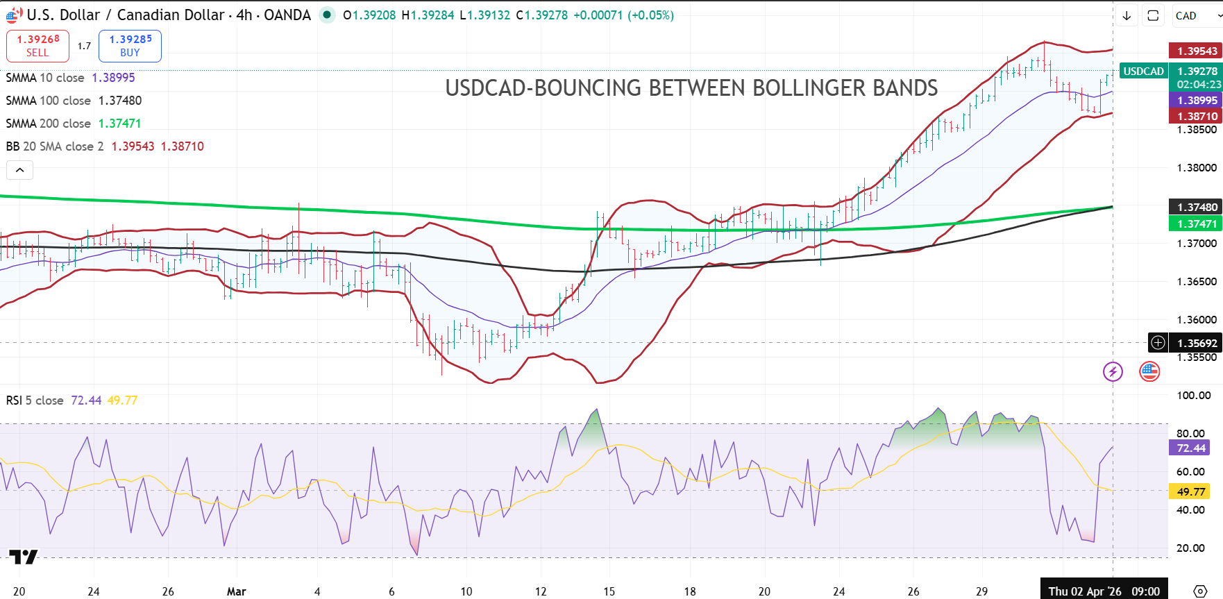 The medium-term USDCAD technicals are bullish above 1.3810, where the 100-day (1.3813) and 200-day (1.3818) moving averages converge and continue to act as a firm pivot zone. However, the daily RSI near 74 indicates the market remains stretched, leaving rallies vulnerable to pauses or shallow corrections rather than a clean breakout.