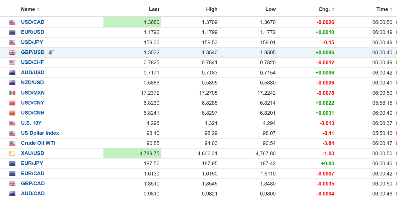 FX open high low 6:00 am