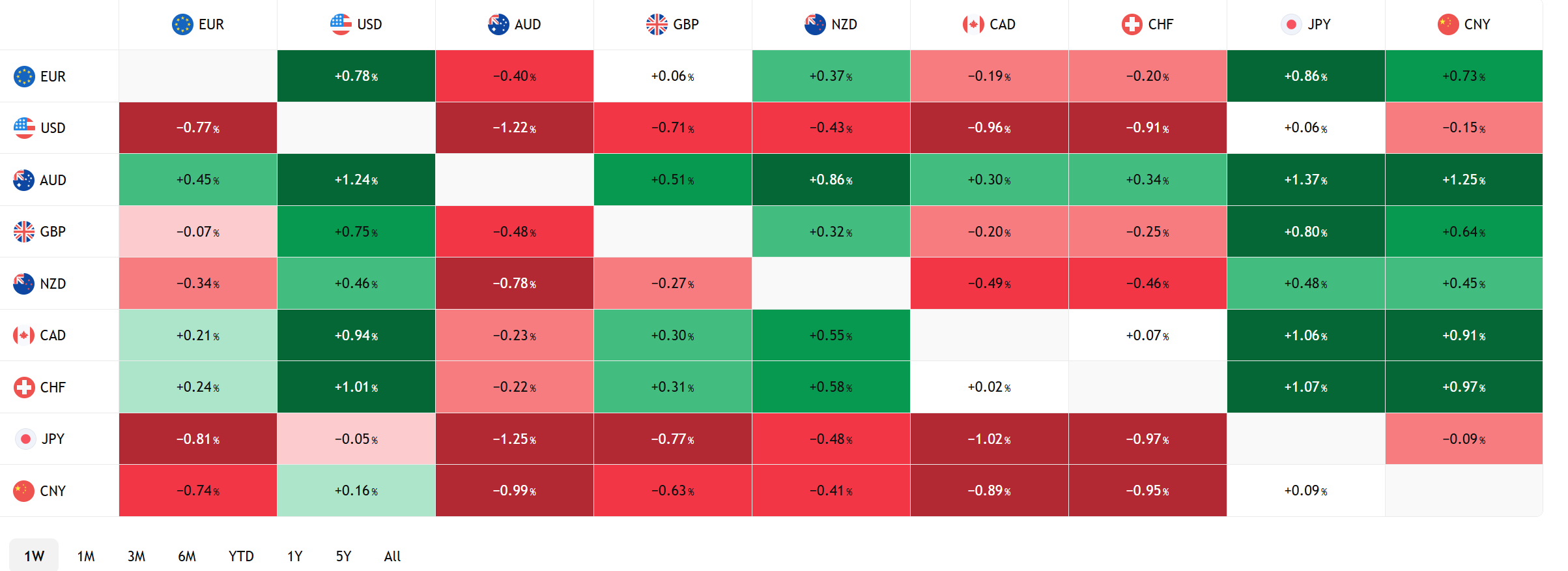 FX Heat Map (6:00 am) one week
