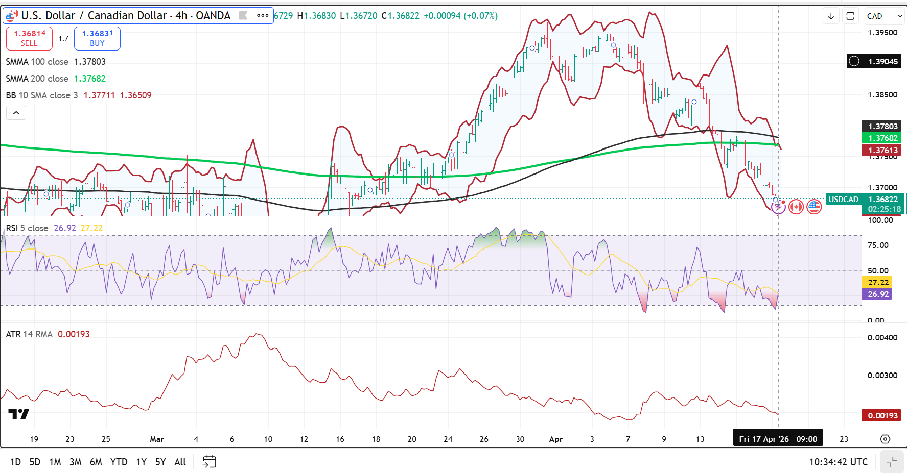 The intraday USDCAD technicals are bearish below 1.3730 and looking for a break below 1.3660 to target the 1.3610-1.3630 area. A move above 1.3730 opens the door to 1.3770. The RSI is near 27, suggesting weak momentum which may limit follow-through and trigger a corrective bounce.