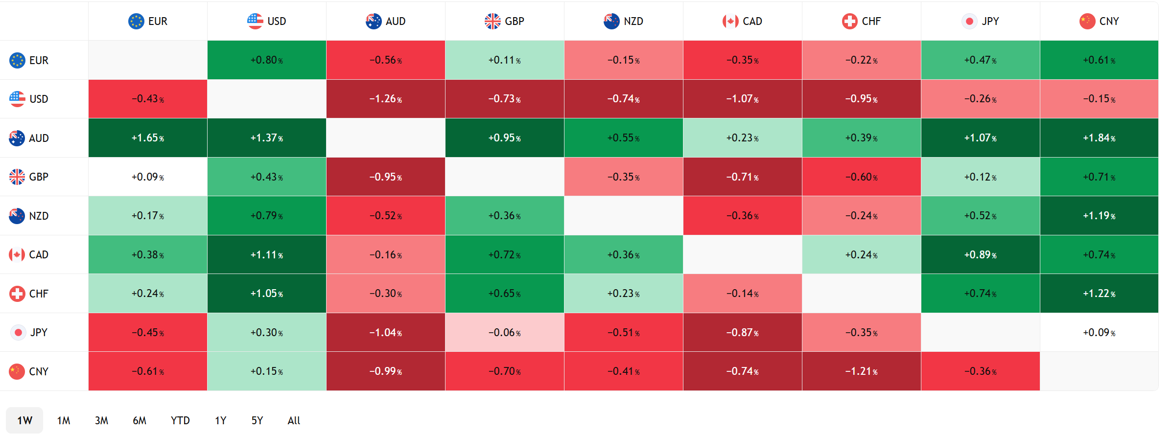 FX Heat Map (6:00 am) one week