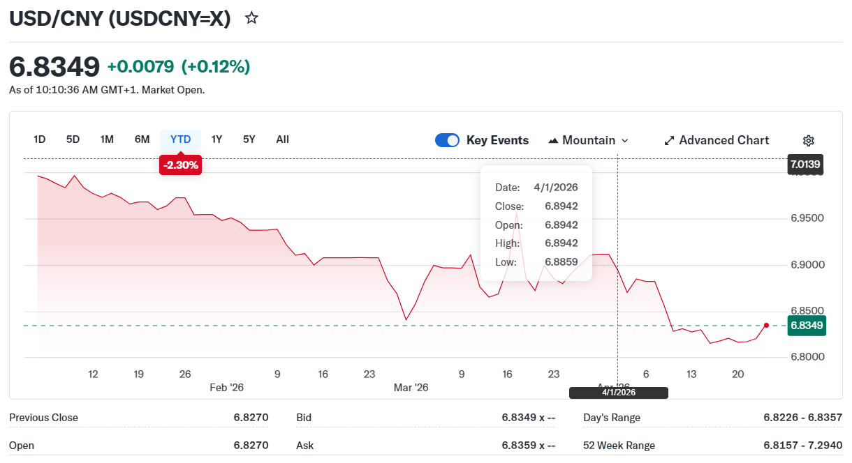 USDCNY Fix: 6.8650 vs exp. 6.8294 (Prev. 6.8635)