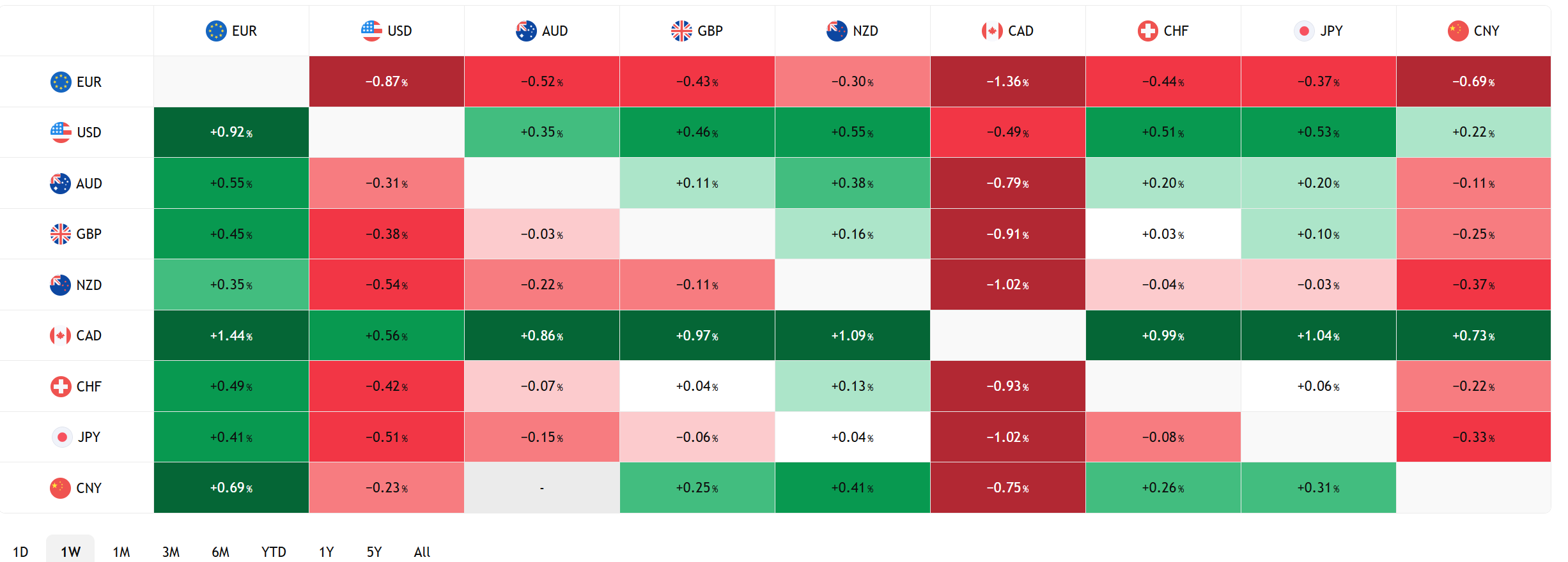 FX Heat Map (6:00 am) one week