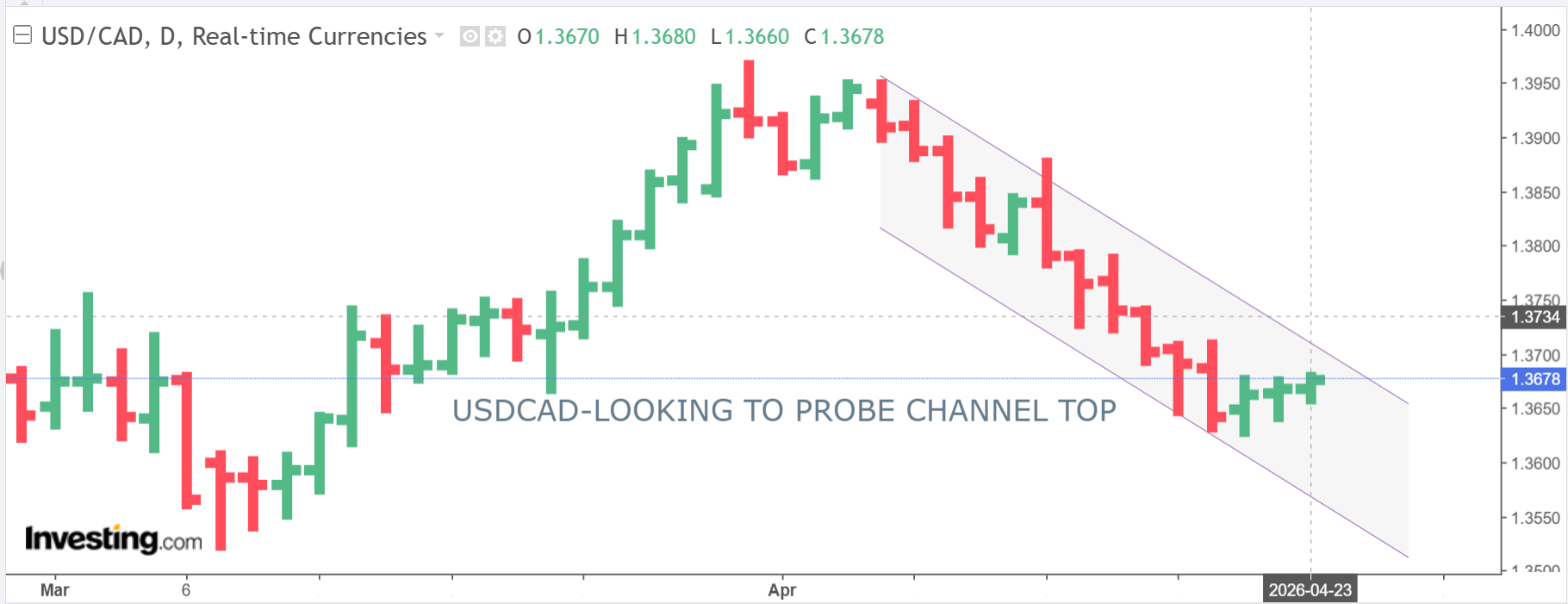 USDCAD open: 1.3668, overnight range 1.3660-1.3680, close 1.3672