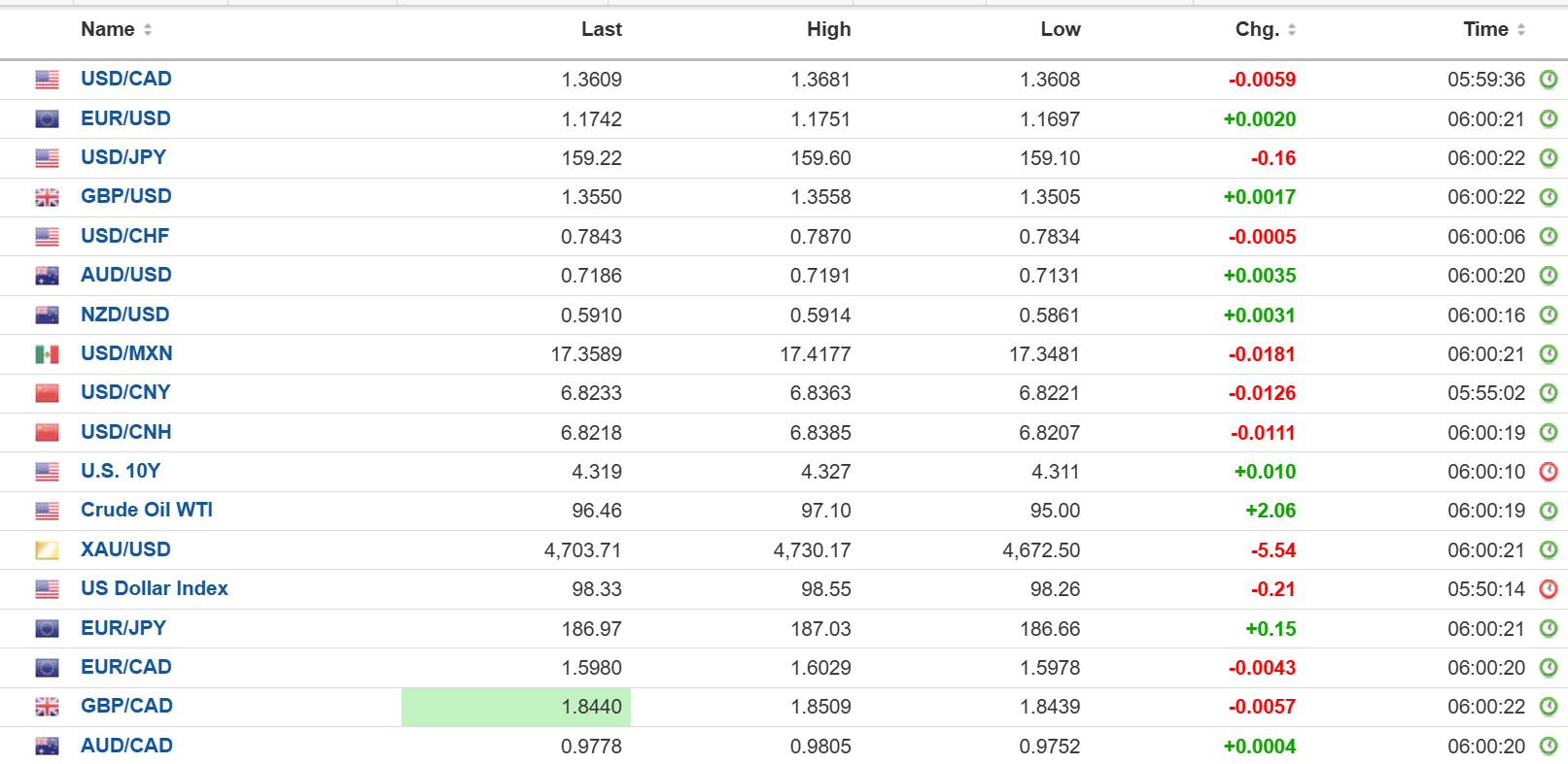 As of 5:40 am PT, the German DAX is up 0.72%, the French CAC 40 has gained 0.35%, and the UK FTSE 100 is flat as are S&P 500 futures. The 10-year Treasury yield is 4.318%, the DXY is 98.25, and gold (XAUUSD) is 4,697.70.