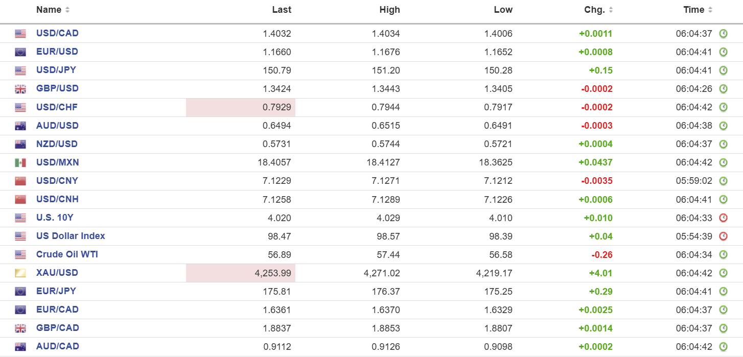 As of 7:00 AM EDT, European indexes are higher. Germany’s DAX index has gained 1.24%, the UK FTSE 100 index is up 0.37%, and the French CAC-40 is flat. S&P 500 futures have gained 0.16%, and the U.S. Dollar Index (DXY) is 98.56. The U.S. 10-year Treasury yield is 4.017%, while gold (XAUUSD) is 4256.41.