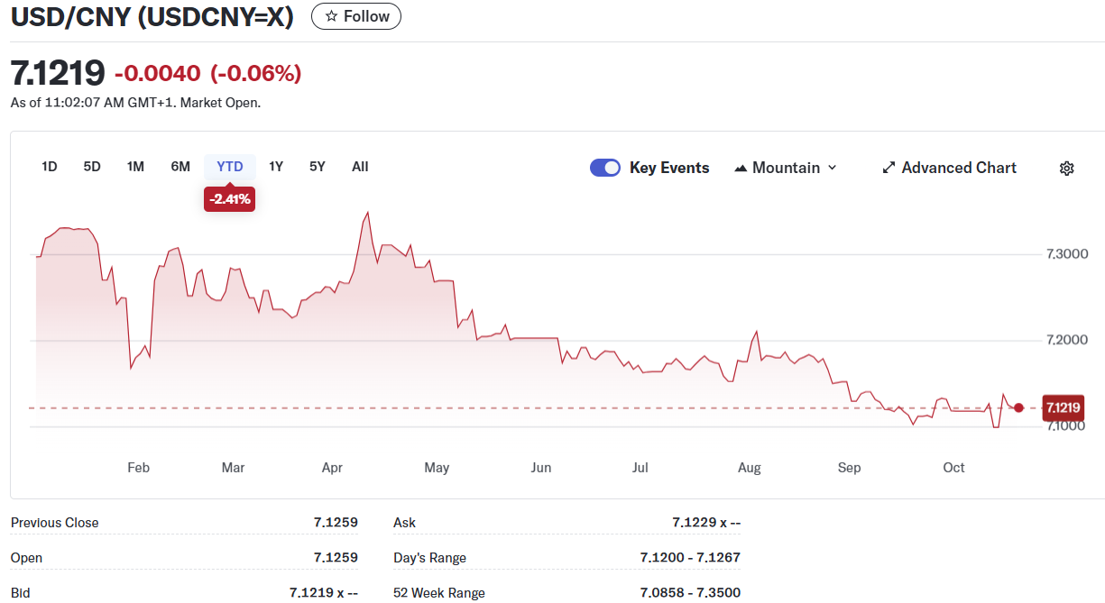 President Trump is expecting a China US/ trade deal. In his words, they are getting along with China, and 100% tariffs are not sustainable. He said that America’s top issues with Beijing are rare earths, fentanyl, and soybeans. Treasury Secretary Bessent said they would be holding talks in Malaysia.