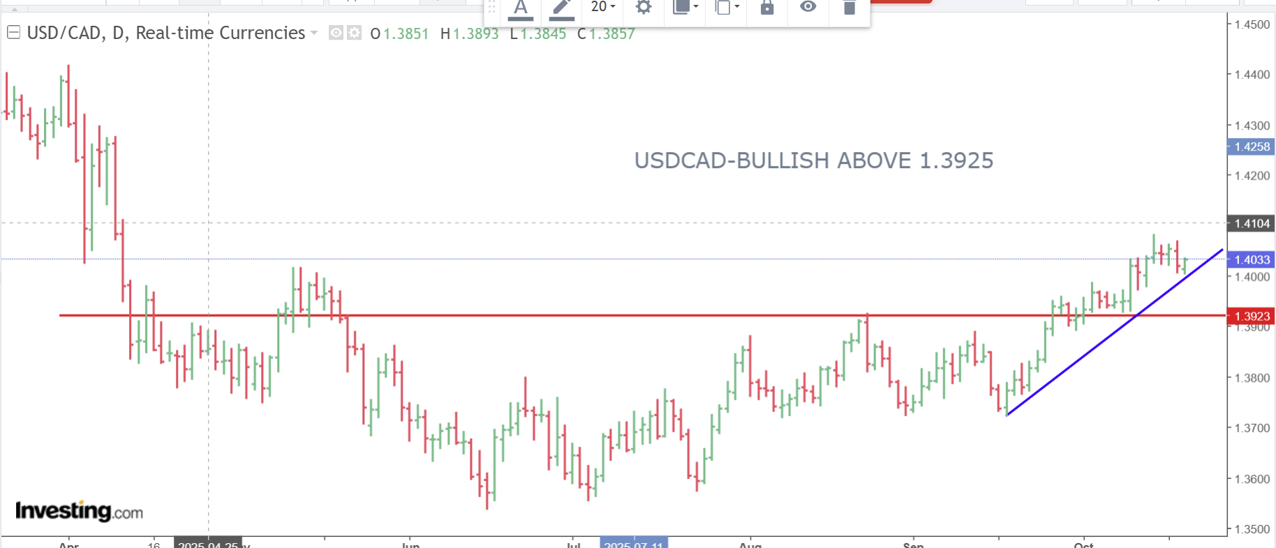 For today, USDCAD support is at 1.4010 and 1.3970. Resistance is at 1.4070 and 1.4110.