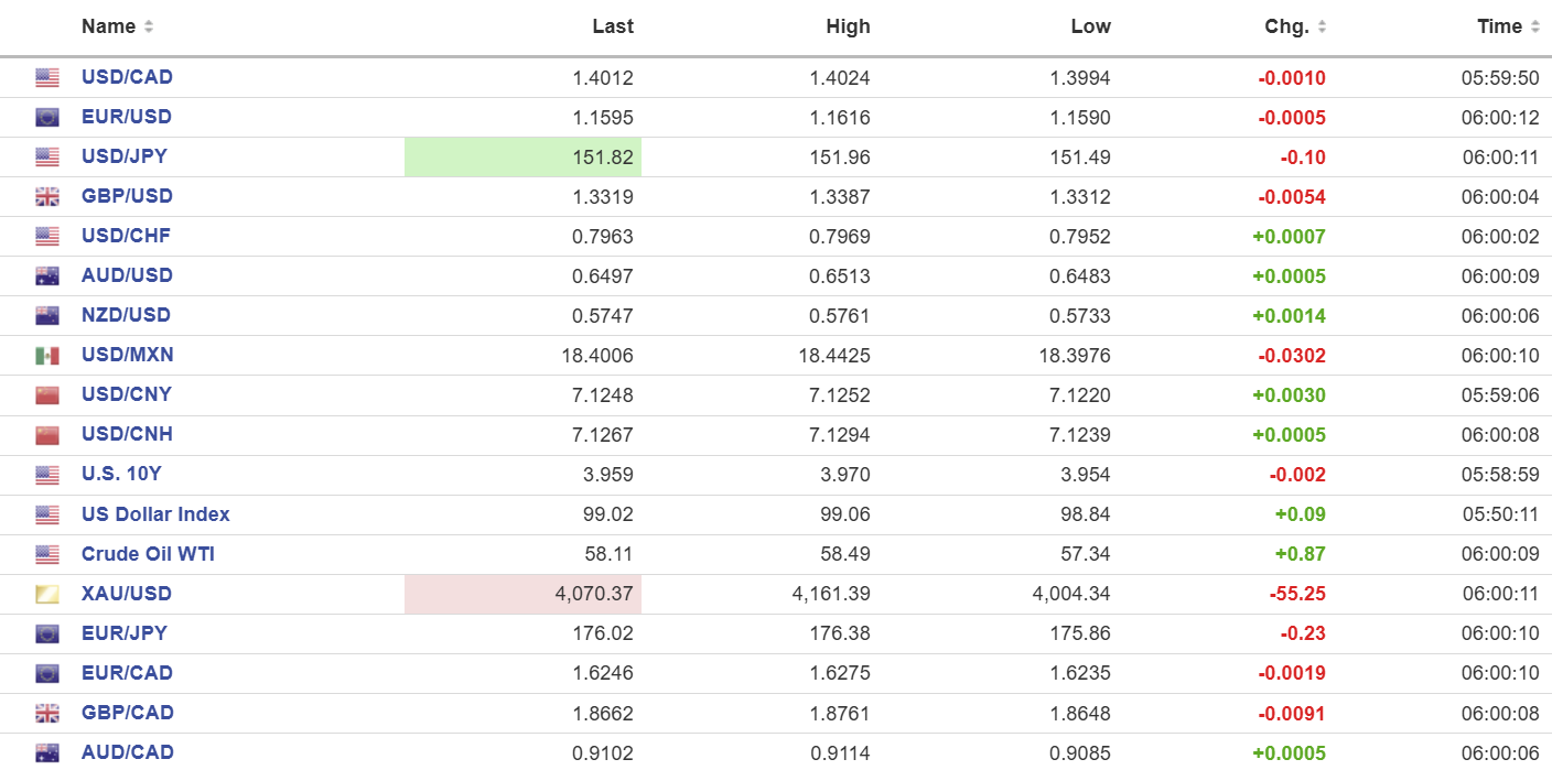 As of 5:15 AM, European indexes are mixed. The French CAC-40 is down 0.29%, the U.K. FTSE 100 is up 0.93%, and Germany’s DAX is down 0.09%. S&P 500 futures are flat, while the U.S. Dollar Index (DXY) has risen to 99.07. The U.S. 10-year Treasury yield is 3.95%, and gold (XAUUSD) trades at 4048.45