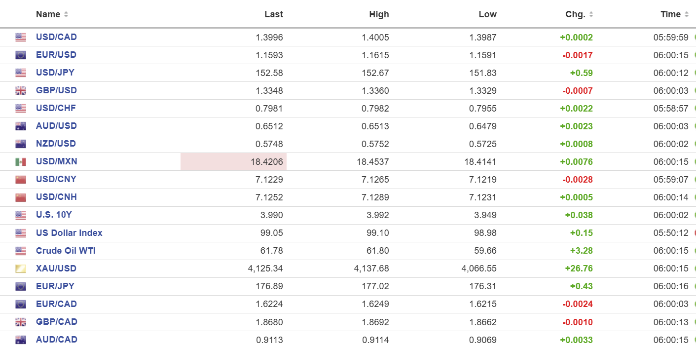 As of 7:00 AM, European indexes are mostly higher. The French CAC-40 has gained 0.41%, the U.K. FTSE 100 is up 0.57%, and Germany’s DAX is down 0.21%. S&P 500 futures are flat, while the U.S. Dollar Index (DXY) is 99.11. The U.S. 10-year Treasury yield is 3.992%, and gold (XAUUSD) trades at 4116.51.