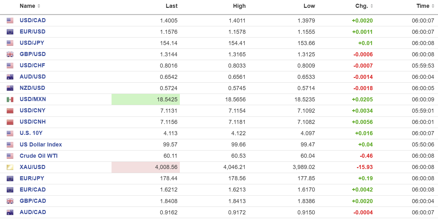 As of 5:40 AM, PDT, the UK FTSE 100 index is down by 0.23%, the German DAX has lost 0.26%, and the French CAC-40 index is off by 0.16%. S&P 500 futures are up 0.82%, and the U.S. Dollar Index (DXY) is 99.64. The U.S. 10-year Treasury yield is 4.092%, and Gold (XAUUSD) is 4031.07