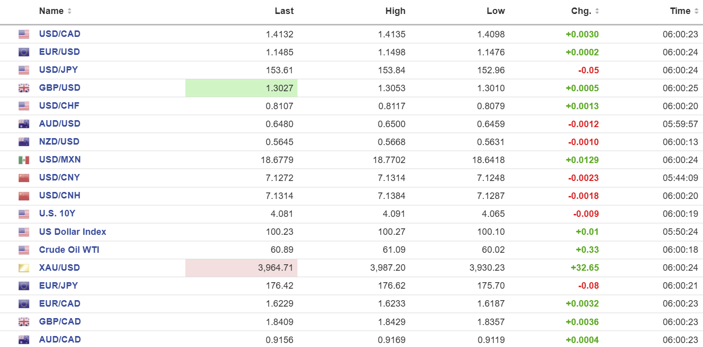 As of 5:30 am PT, the German DAX is down 0.33%, the French CAC-40 index is flat, and the UK FTSE 100 index is up 0.15%. S&P 500 futures are down by 0.11%, and the US Dollar Index (DXY) is 100.19. The US 10-year Treasury yield is 4.104%, and Gold (XAUUSD) is 3973.96