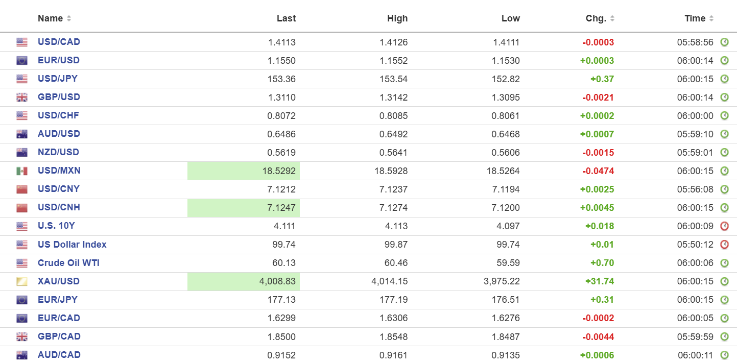 As of 7:10 am, the German DAX has lost 0.91%, the French CAC-40 is down 0.62% and the FTSE 100 index is lower by 0.74%. S&P 500 futures are down 0.17%, and the US Dollar Index (DXY) is 99.65. The US 10-year Treasury yield is 4.097%, and gold (XAUUSD) is $4001.65.