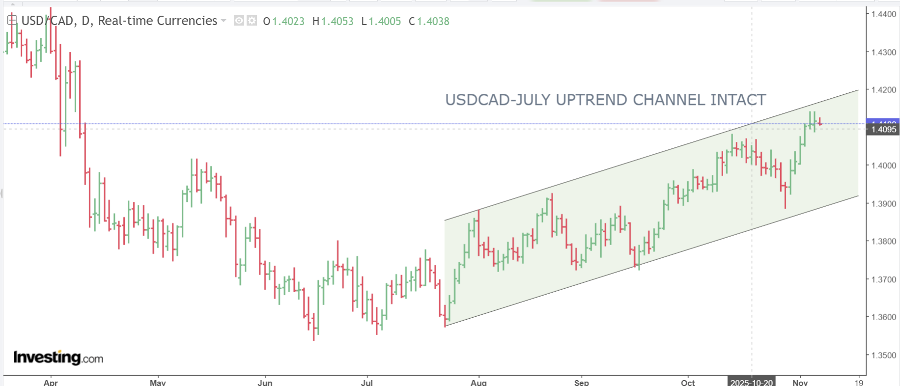 USDCAD open: 1.4118, overnight range 1.4059-1.4126, close, 1.4119