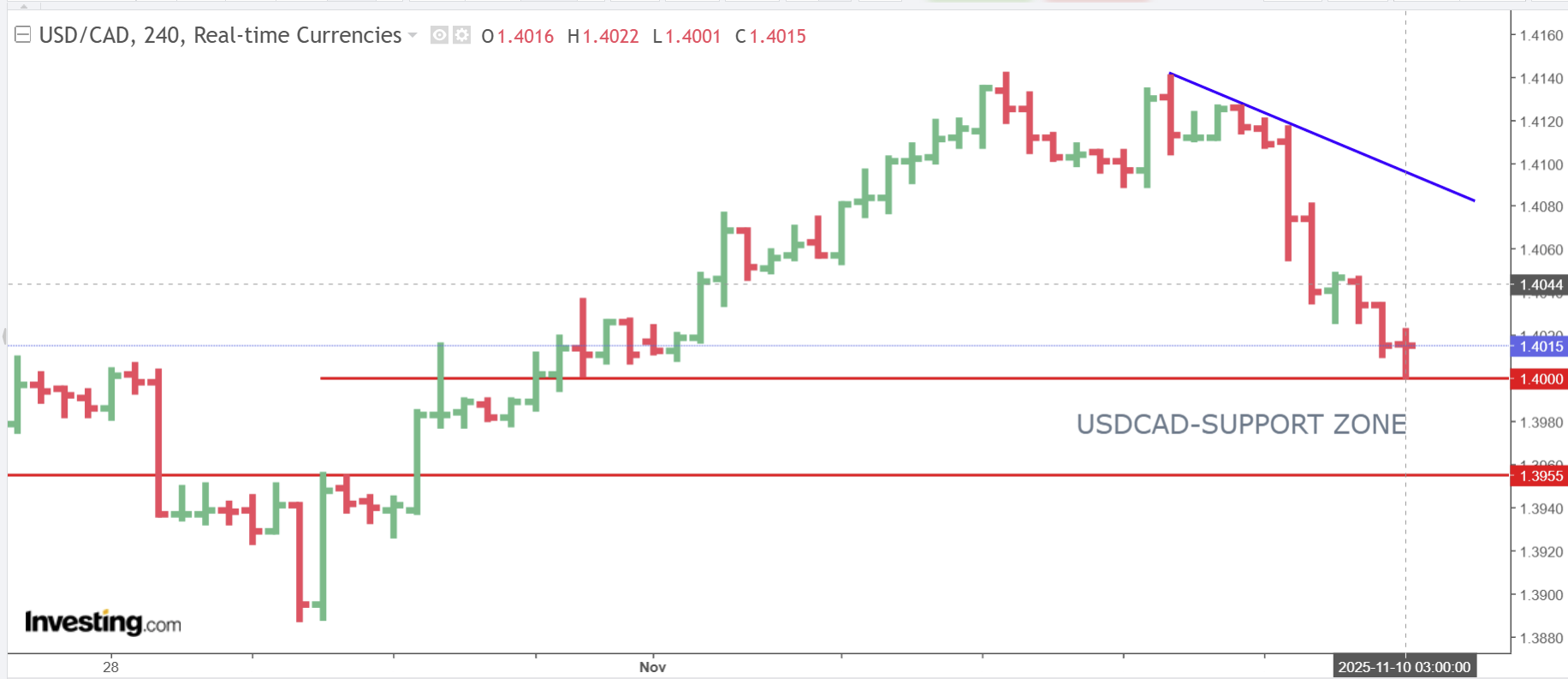 USDCAD direction continues to be dictated by US dollar sentiment, and that sentiment turned bearish on US political developments and weaker-than-expected US economic data, which increased the odds for a December 10 Fed rate cut.