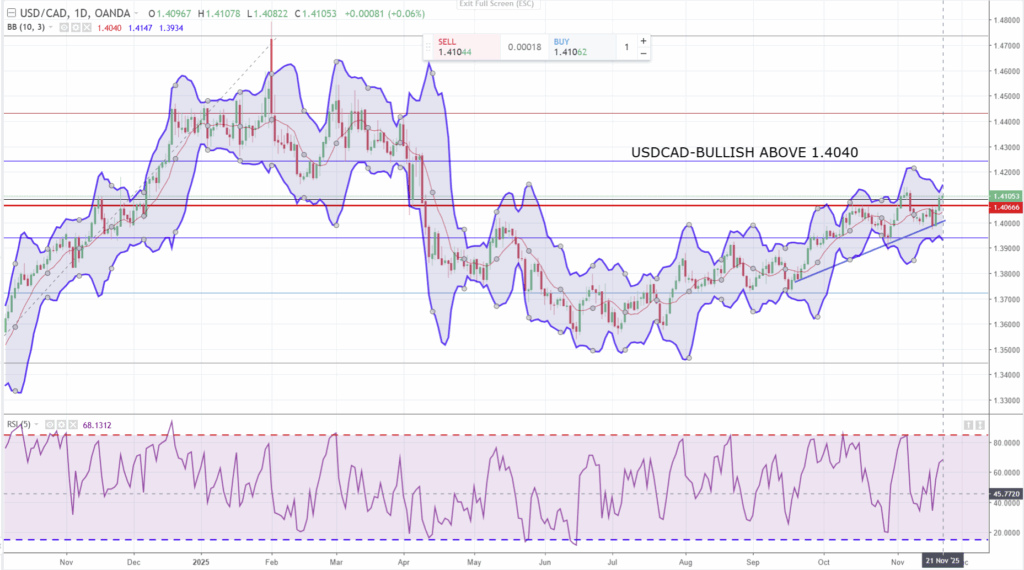 The medium-term technicals are bullish while prices are above 1.4040 and are looking for a break of 1.4150 to target 1.4280.  The momentum indicators are elevated but not overbought.