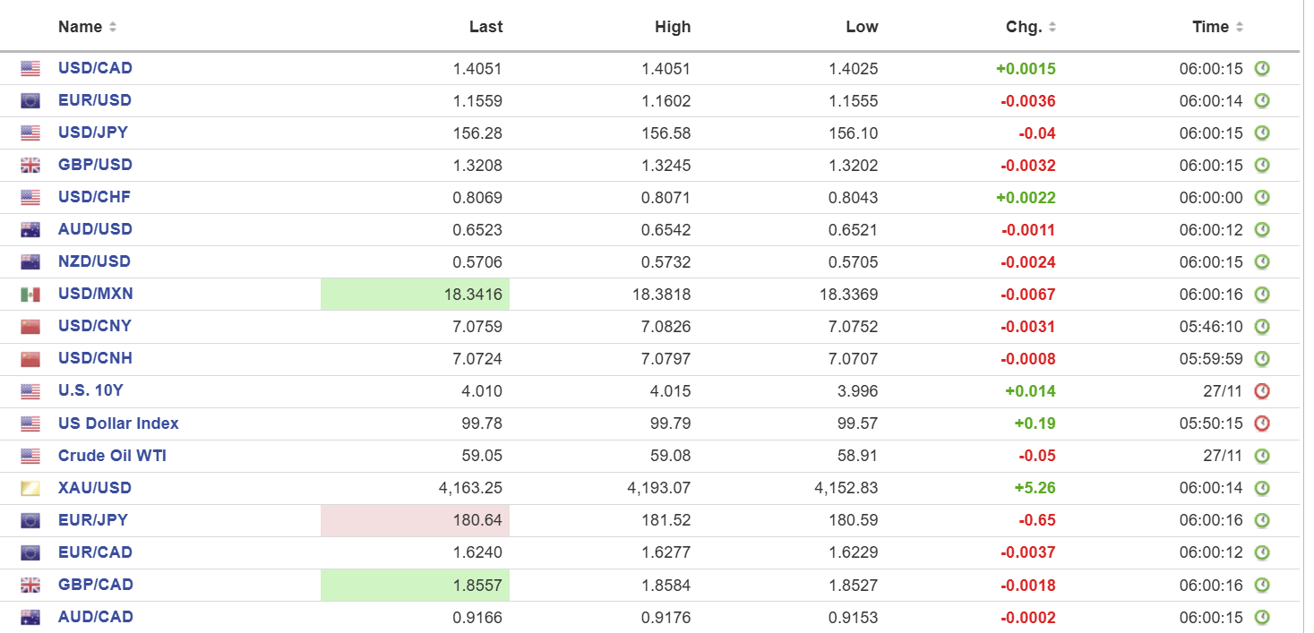 As of 5:45 am PT,the German Dax and French CAC-40 indexes are up 0.23% while the UK FTSE100 is up 0.13%. The US Dollar Index (DXY) is 99.67, the US 10-year Treasury yield is 4.00%, and gold (XAUUSD) is $4175.35.