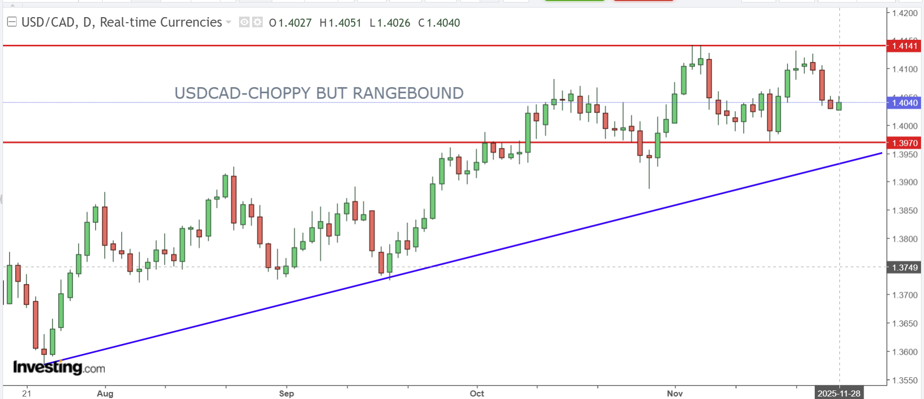 USDCAD traded sideways in a quiet overnight session ahead of today’s Q3 GDP data then dropped to 1.3992 from 1.4016, post data.