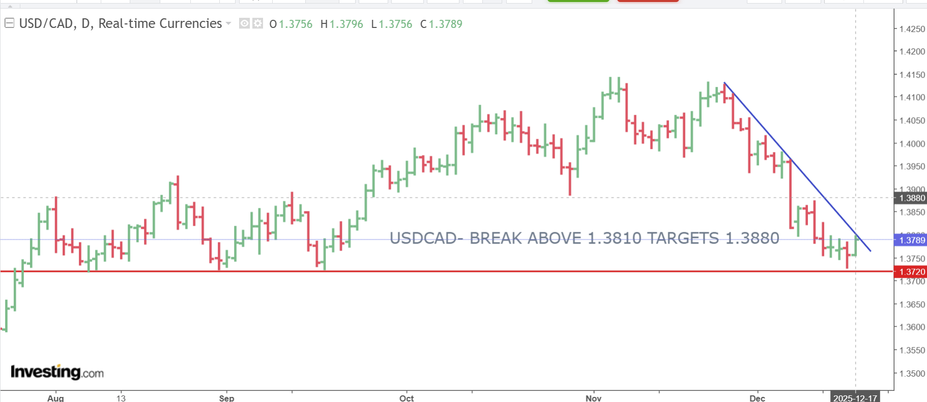 For today, USDCAD support is at 1.3740 and 1.3720. Resistance is at 1.3810 and 1.3850