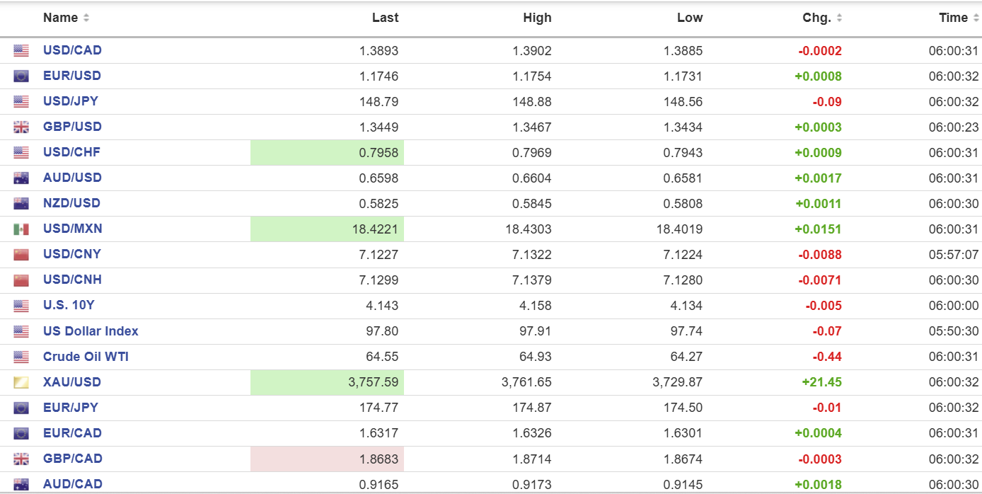As of 5:30 am PDT, the German Dax has lost 0.98%, the French CAC-40 index is down 0.69%, and the UK FTSE 100 index has dropped by 0.32%. S&P 500 futures are down 0.36%. The US dollar index (DXY) is 97.90, Gold (XAUUSD) is 3739.05 and the US 10-year Treasury yield sits at 4.188%.