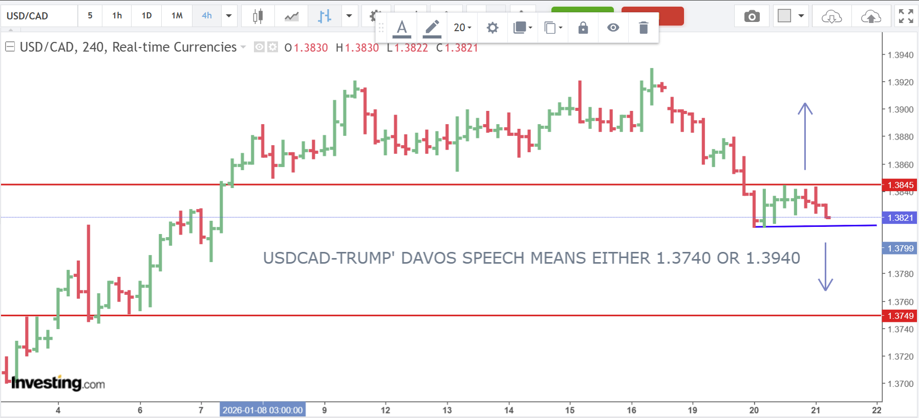 USDCAD is consolidating this week’s losses ahead of the Trump Circus in Davos. The annual “aren’t we grand” summit of people who perceive themselves as the global elite hasn’t garnered this much attention since Trump 1.0 in 2018.  Trump will be speaking shortly.
