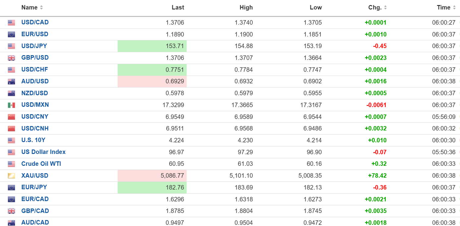 As of 5:30 am PT, European bourses are in positive territory, led by the UK FTSE 100, which is up 0.53%. The French CAC 40 has gained 0.46%, and the German DAX is flat.  S&P 500 futures are 0.23% higher. The US Dollar Index is 96.64, down from 97.29 overnight, the 10-year Treasury yield is 4.233%, and gold (XAUUSD) is 5077.39