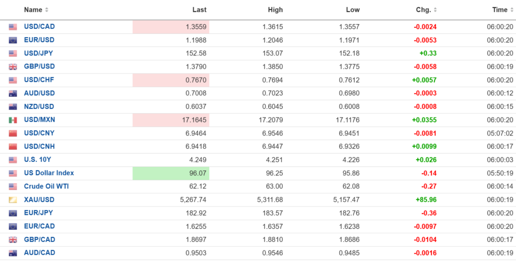 As of 7:00 am, European markets are in the red. The French CAC-40 has lost 1.03%, the UK FTSE 100 is down 0.48%, while the German DAX is flat. S&P 500 futures are up 0.36% ahead of earnings results from MSFT, TSLA, and META. The US Dollar Index is at 96.25, the 10-year Treasury yield is 4.244%, and gold (XAUUSD) is at 5342.41 after reaching 5311.68 overnight.
