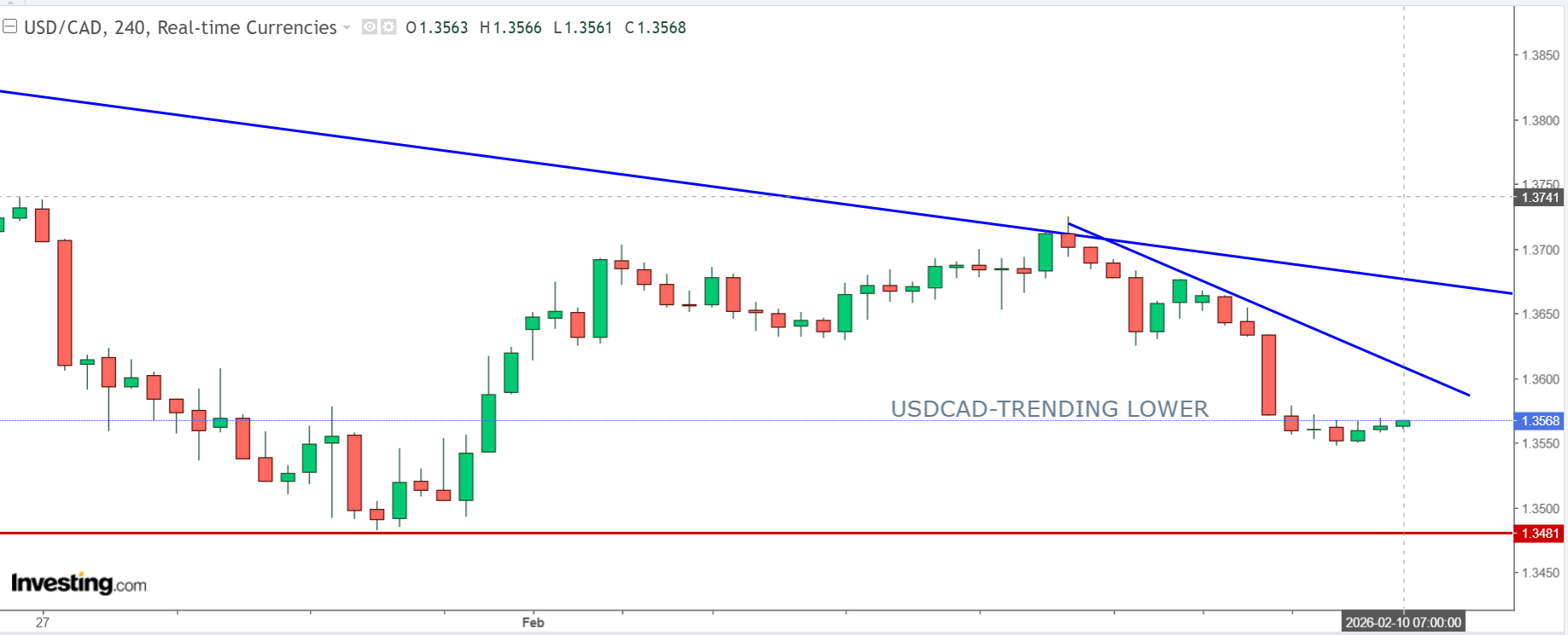 GBPUSD climbed in a 1.3658–1.3700 range on broad US dollar weakness. UK political tensions eased somewhat after a number of Labour ministers voiced support for Prime Minister Starmer. Mr. Starmer did not know Epstein, but he was caught up in the muck because he appointed Peter Mandelson as UK Ambassador to the US and knew that Mandelson was tainted. GBPUSD needs to decisively break above 1.3705 or else risk a retest of 1.3580.