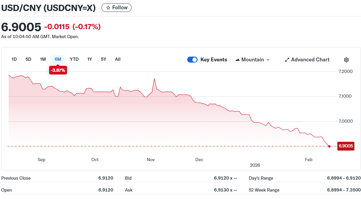 FX traders appear to disagree. That could be because they believe that incoming Fed Chair Kevin Warsh is “Trump’s man, and that he will steer monetary policy according to Trump’s wishes. The post-NFP rally in the US dollar index (DXY) from 96.72 to 97.27 reversed quickly and the DXY settled in to a 96.77-97.07 range overnight and is at the bottom of the band in NY trading.