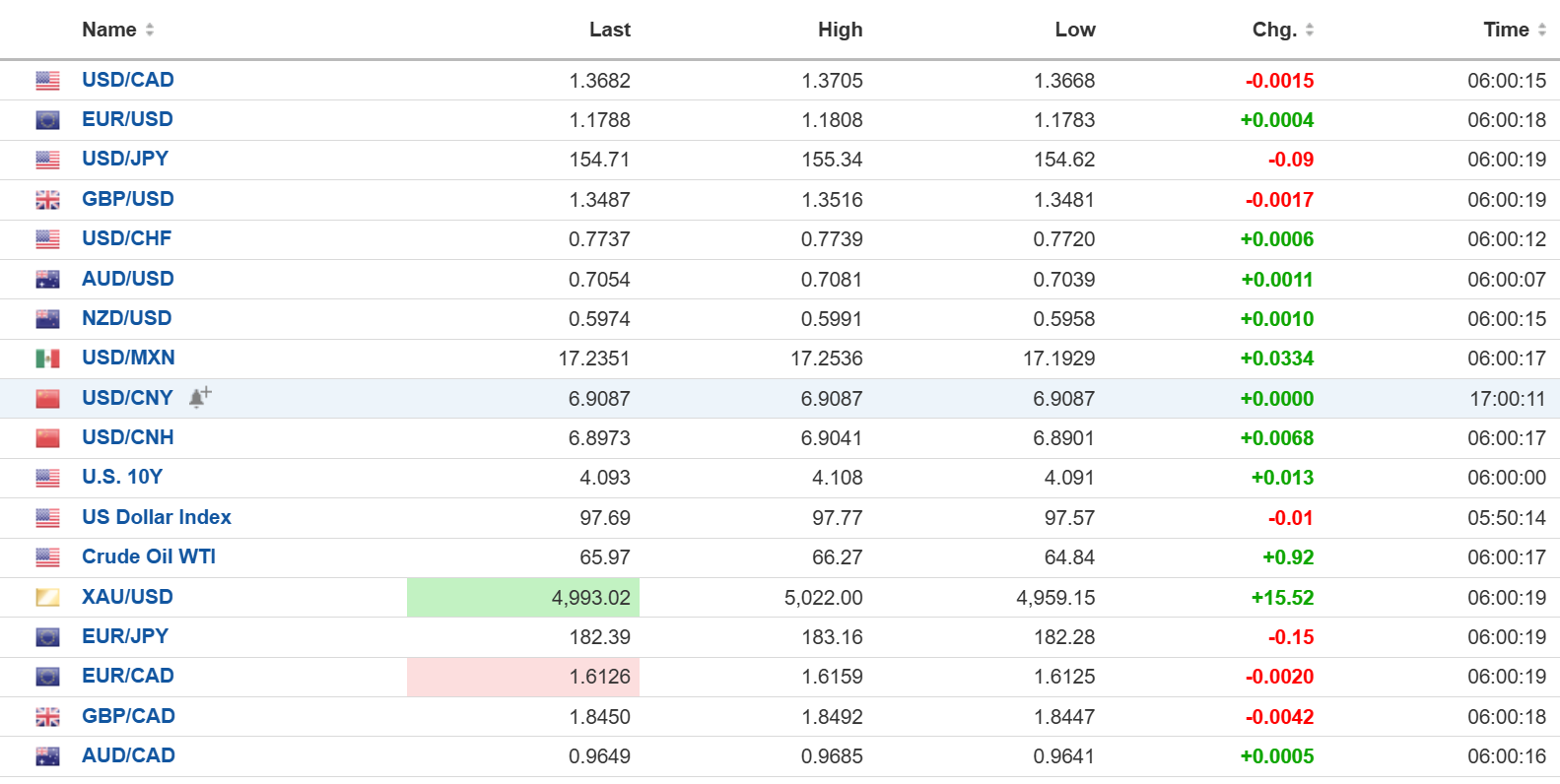 FX Heat Map (6:00 am) one week